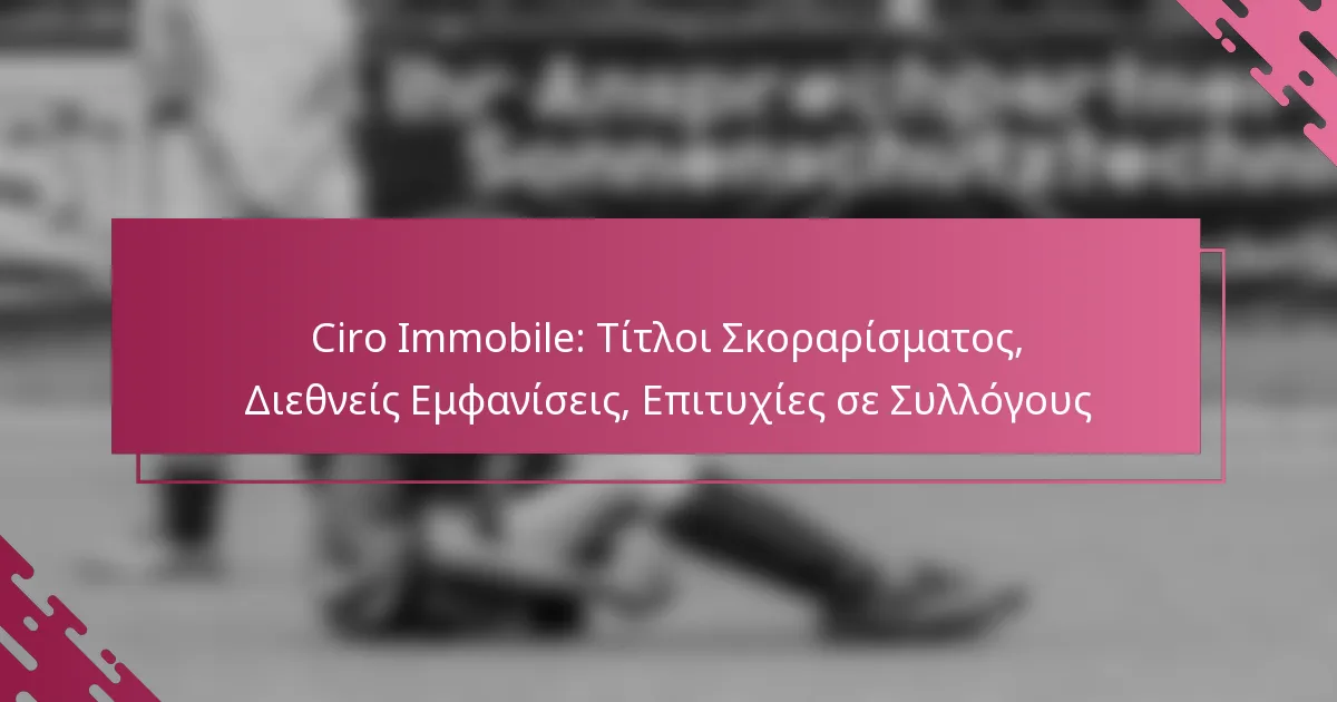 Ciro Immobile: Τίτλοι Σκοραρίσματος, Διεθνείς Εμφανίσεις, Επιτυχίες σε Συλλόγους