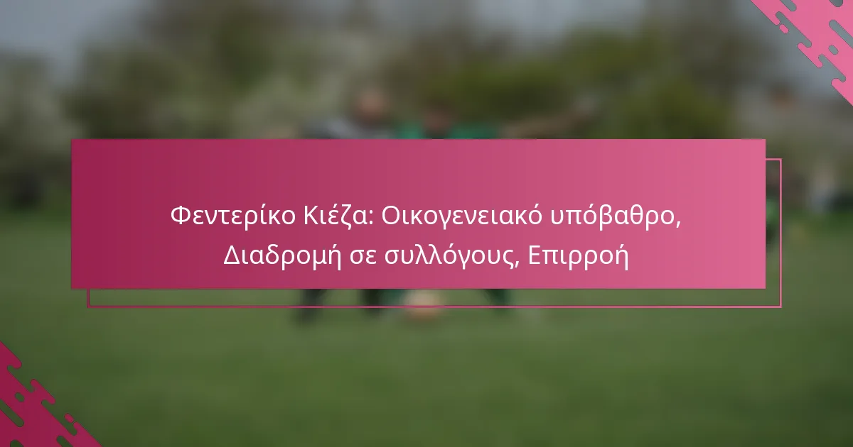 Ο Φεντερίκο Κιέζα, προερχόμενος από μια οικογένεια με αθλητικές καταβολές, έχει επηρεαστεί βαθιά από την ανατροφή του, η οποία του ενστάλαξε ισχυρές αξίες και αφοσίωση στο ποδόσφαιρο. Η πορεία του σε συλλογικό επίπεδο ξεκίνησε από τη Φιορεντίνα, όπου αναδείχθηκε ως βασικός παίκτης πριν μετακομίσει στη Γιουβέντους, εδραιώνοντας περαιτέρω τη φήμη του στο άθλημα. Πέρα από τις επιτυχίες του στον αγωνιστικό χώρο, ο Κιέζα συμβάλλει ενεργά στην ποδοσφαιρική κοινότητα μέσω καθοδήγησης και φιλανθρωπικών πρωτοβουλιών, αφήνοντας ένα διαρκές αποτύπωμα στο παιχνίδι στην…