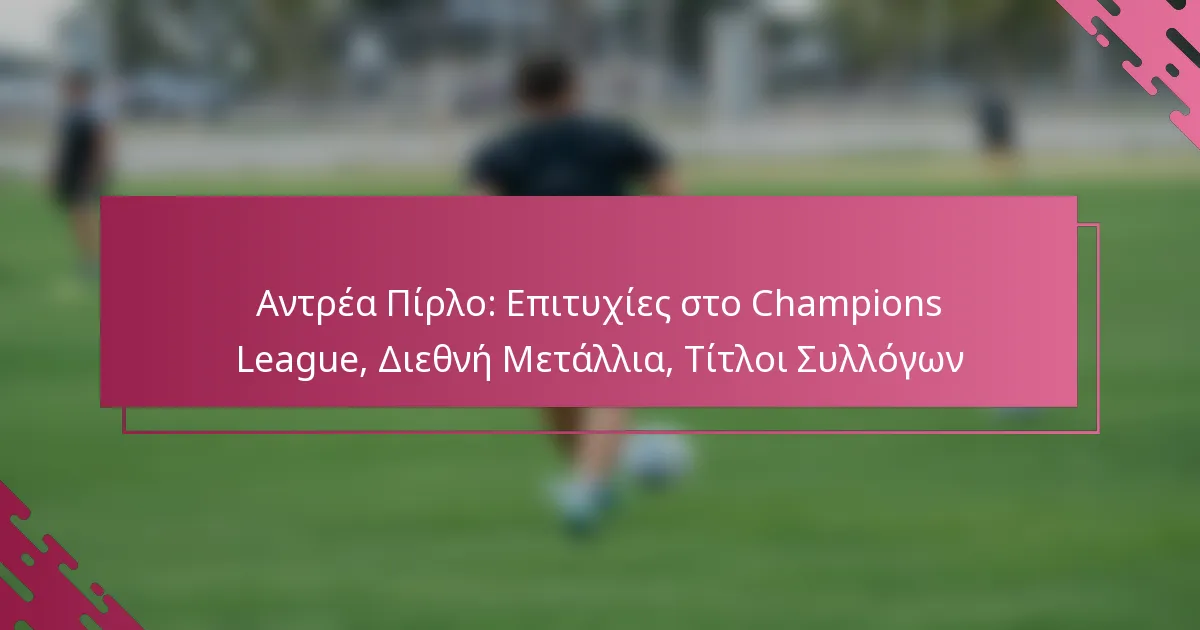 Ο Αντρέα Πίρλο είναι γνωστός για τα αξιοσημείωτα επιτεύγματά του στο ποδόσφαιρο, ιδιαίτερα στο UEFA Champions League, όπου κατέκτησε δύο τίτλους με την AC Milan. Η διεθνής επιτυχία του με την εθνική ομάδα της Ιταλίας εδραιώνει περαιτέρω την κληρονομιά του, καθώς κέρδισε πολλές prestigiosas μετάλλια. Επιπλέον, η λαμπρή καριέρα του σε συλλόγους, που χαρακτηρίζεται από πολλούς τίτλους πρωταθλήματος και εγχώρια κύπελλα με την AC Milan και τη Γιουβέντους, αναδεικνύει το εξαιρετικό ταλέντο και την επιρροή του στο άθλημα. Key sections…