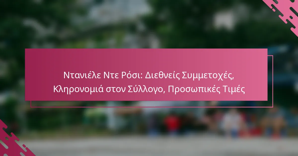 Ο Ντανιέλε Ντε Ρόσι είναι μια εμβληματική φιγούρα στο ιταλικό ποδόσφαιρο, γνωστός για τις εκτενείς συνεισφορές του στην εθνική ομάδα. Με πολλές συμμετοχές και καθοριστικές εμφανίσεις σε μεγάλες διοργανώσεις, έχει καθιερωθεί ως ένας από τους καλύτερους μέσους της Ιταλίας, αφήνοντας μια βαθιά κληρονομιά που συνεχίζει να επηρεάζει το άθλημα. Key sections in the article: Toggle Ποιες είναι οι διεθνείς επιτυχίες του Ντανιέλε Ντε Ρόσι; Αριθμός συμμετοχών και γκολ για την ιταλική εθνική ομάδα Συμμετοχή σε διοργανώσεις Παγκοσμίου Κυπέλλου FIFA Συμμετοχή…