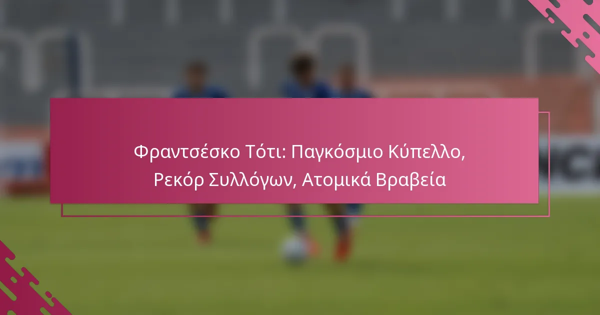 Ο Φραντσέσκο Τότι, μια εμβληματική φιγούρα στο ποδόσφαιρο, άφησε διαρκή επίδραση τόσο στη διεθνή σκηνή όσο και στην AS Roma. Οι συνεισφορές του στην ιταλική εθνική ομάδα ήταν καθοριστικές στην νίκη τους στο Παγκόσμιο Κύπελλο του 2006, ενώ οι επιδόσεις του στην ομάδα του, συμπεριλαμβανομένων των περισσότερων γκολ και συμμετοχών, υπογραμμίζουν το εξαιρετικό του ταλέντο και την αφοσίωσή του. Καθ’ όλη τη διάρκεια της καριέρας του, ο Τότι έλαβε πολλές ατομικές διακρίσεις, εδραιώνοντας περαιτέρω την κληρονομιά του στον κόσμο του…